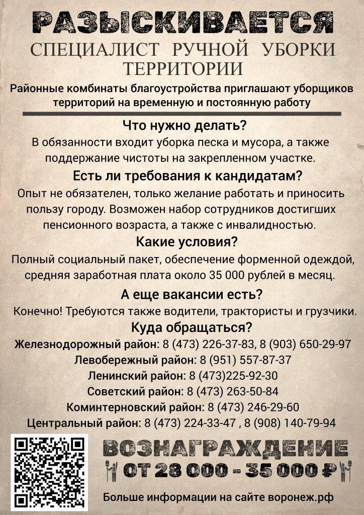 Комбинатам благоустройства срочно требуются работники ручной уборки
