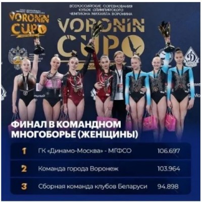 Воронежский регион представляли воспитанница МБУ СШ № 17 Елизавета Малыгина и воспитанница ГБУ ВО СШОР им. Штукмана Ангелина Мельникова. Сборная Воронежской областизавоевала «серебро» в командном многоборье, набрав 103,964 балла, уступив команде ГК "Динамо-Москва" МГФСО - 106,697 балла. Третье место заняла сборная команда клубов Беларуси - 94,898 баллов.