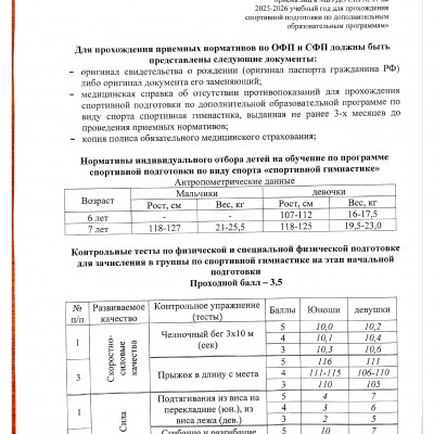 Нормативы индивидуального отбора 2025-2026 уч.г.
