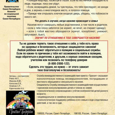 Для решения этой задачи мы предлагаем памятку для несовершеннолетних "Будь в безопасности", разработанную специалистами Службы межведомственного взаимодействия приюта "Транзит".
